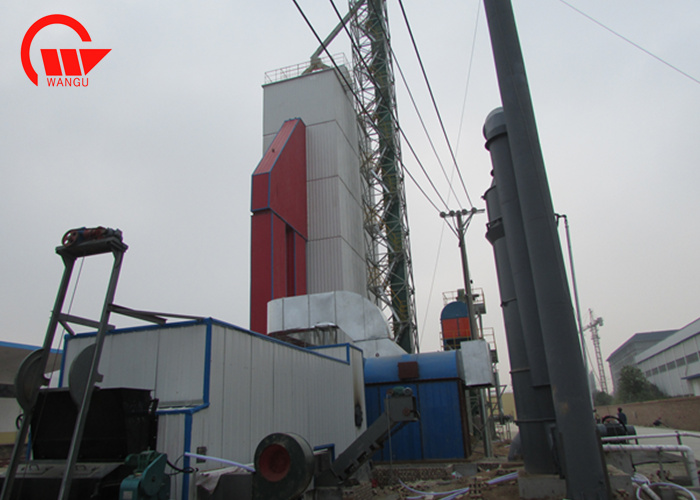 In the whole process, raw grain will first fill the drying container, then the hot-blast generated by the furnace will go through the air intakes and enter the inside of the machine. Corn flows slowly from top to bottom by gravity. Meanwhile the hot air flow through the corns layer by layer. In this process, heat is transferred from hot air to grain material to raise the grain temperature to make the moisture inside the material evaporate into the air and become exhausted air, then discharged into the air through the angular boxes. if the working temperature inside the dryer exceeds 150 degrees, or the temperature of corn more than 60 degrees, the quality of corn will be greatly affected. Corn dryer of Wangu Machinery Co., Ltd, select the technology of tempering process, alternating high and low temperature drying multi-level segment, the corn into the cooling section, after cooling, cooling grain to grain storage temperature, then discharged from the grain discharge section greatly to ensure the quality of maize, but also save energy, making breakage rate of corn to 3‰ or less.